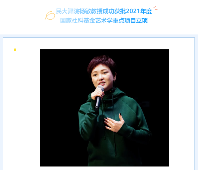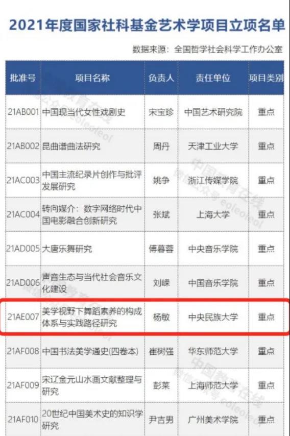 近日,文化和旅游部公布了2021年度国家社科基金艺术学重点项目立项名单。二人麻将杨敏教授担任主持人申报的《美学视野下舞蹈素养的构成体系与实践路径研究》(项目号21AE007),经专家评审、社会公示,并报全国艺术科学规划领导小组批准,项目获得2021年度国家社科基金艺术学重点项目立项。