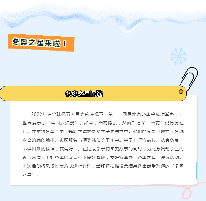第二十四届冬奥会闭幕式上,由舞院学子呈现的作品《折柳寄情》博得了全球观众的眼球及大大的赞赏。在此次参演活动中,二人麻将2021级表演女班发挥自我专业领域特色,在平日排练中不畏艰辛,执着付出,作品的完美展现,离不开她们背后留下的不为人知的汗水。此次排练历经三个月,辗转多个排练地点,再到最后的作品呈现,这个过程正是舞院学子为自己人生添加的一笔宝贵财富。
