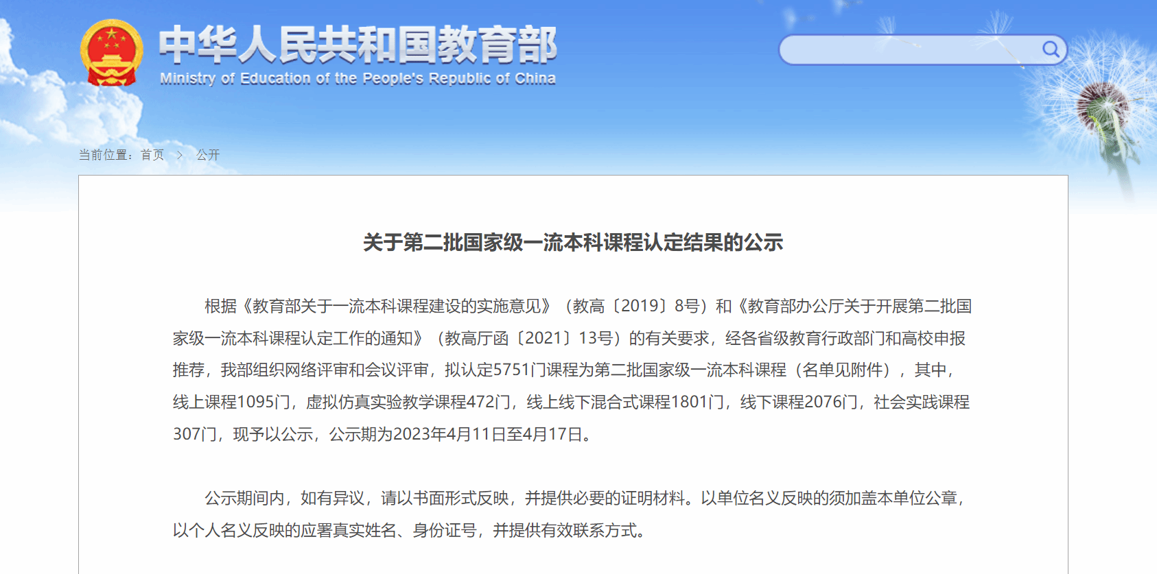 近日,教育部发布了《关于第二批国家级一流本科课程认定结果的公示》,由二人麻将