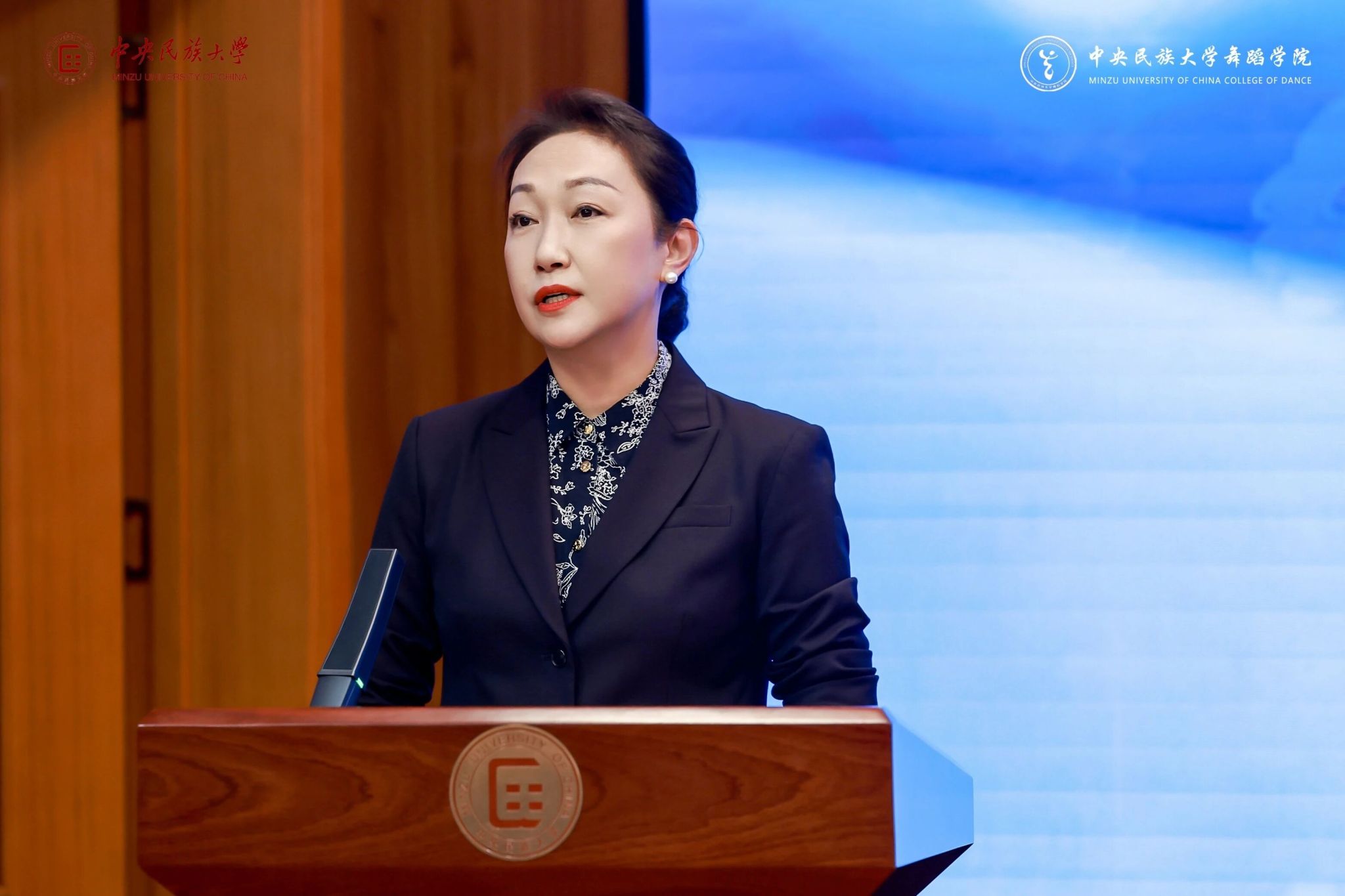 党委副书记、院长、硕士研究生导师李琦教授以《跨界协同·互通互融:舞蹈学科发展新生态》为主题进行分享,提出在全球学术视野和技术创新大背景的双重驱动下,在艺术与科学、人文与技术间的传统界限逐渐消解的同时,唤醒了另一种范式的转变,即开放、动态的跨界协同模式。与此同时,技术赋能成为构建舞蹈艺术新生态的关键“催化剂”。数字技术不仅革新创作逻辑与呈现形态,还推动传播与教育层面的革新。在西北民族大学对敦煌舞教学与研究的尝试中,跨界融通为有效践行铸牢中华民族共同体意识开辟了新的、具有影响力的实践路径。同时,构建新生态的核心要素包括理念重塑、人才培养模式创新、平台与机制建设及伦理与美学反思等,并强调舞蹈学科应注重“人文为体、科技为用”的深度融合,借助跨界对话凸显本土文化的独特价值与当代活力,并通过艺术与科技的协同创新,回应人类共同的情感诉求和精神挑战。