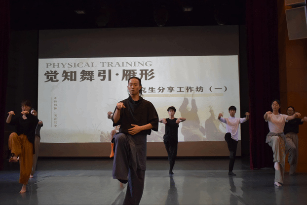 本场讲座通过让大家切身体验,用释放性的姿态去探索外空间与内空间的转换,体会气与力之间的关系,感受自我内在意识与外部空间相互作用,使舞台上的实践者们对呼吸强化身体和觉知能力有了更丰富的实践感悟。