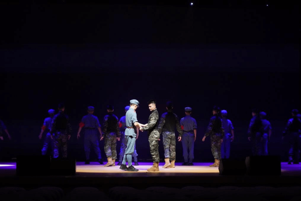 10月11日至12日,支部党员走进军营,对武警官兵进行现场指导排练,并协助完成作品的最终演出录制。排练过程中,学生党员充分发挥专业优势,耐心细致地为官兵讲解舞蹈动作要领、剖析情感表达层次;武警官兵则以严谨认真的态度和昂扬饱满的热情投入每一次练习,展现出过硬的纪律作风和良好的精神风貌。双方在密切的互动与协作中不断加深理解、凝聚共识,成功实现了军人刚毅气魄与舞蹈艺术美感的深度融合,最终呈现出一部名为《传承》的精彩作品,生动诠释了共建活动的丰硕成果与深厚内涵。