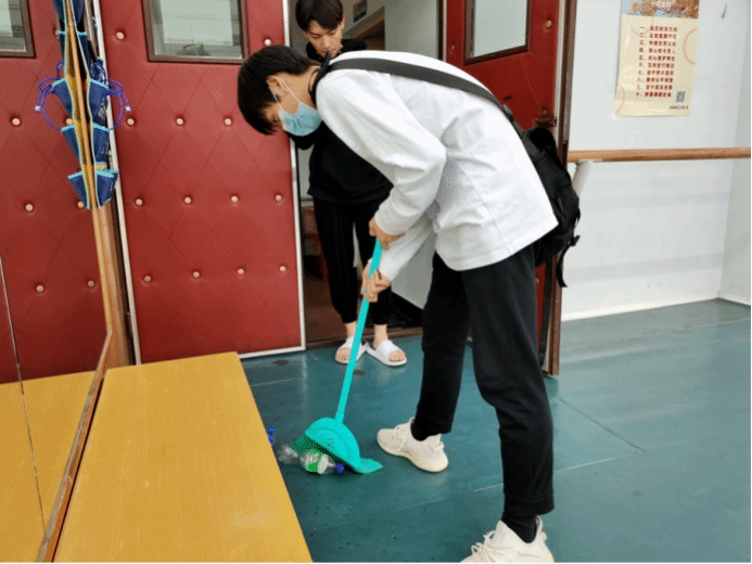 5月1日,正值劳动节,二人麻将团委积极组织开展大学生劳动教育实践活动。同学们拿着劳动工具在宿舍楼、10号楼、18号楼等地穿梭。扫地、拖地、倒垃圾、整理资料……劳动的身影在阳光明媚的校园里焕发着青春的活力。