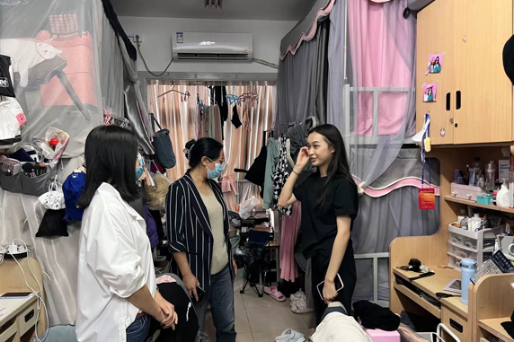 党委书记马娟、党委副书记王淼、团委书记赵子嘉和研究生辅导员李飞对本科生及研究生宿舍进行走访检查。