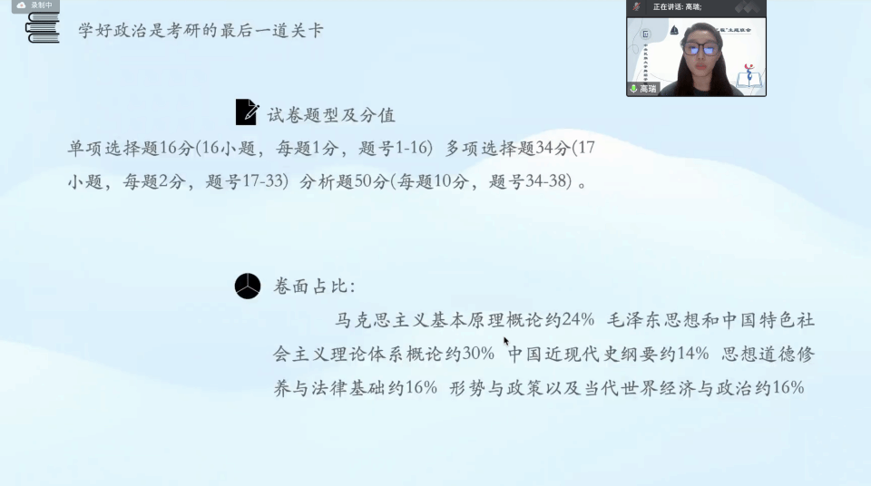 孙婷婷老师为同学们进行本科学习教育。首先,她强调期末考试中设备调试、诚信考试、以及专业考试场地安全等注意事项。接着,她向同学们详细讲解民大舞院保研的类型、名额、资格要求、学业成绩要求等方面的信息。同时她向同学们分享考研的准备工作,并表示希望同学们能够提前规划好学习和生活实践。
