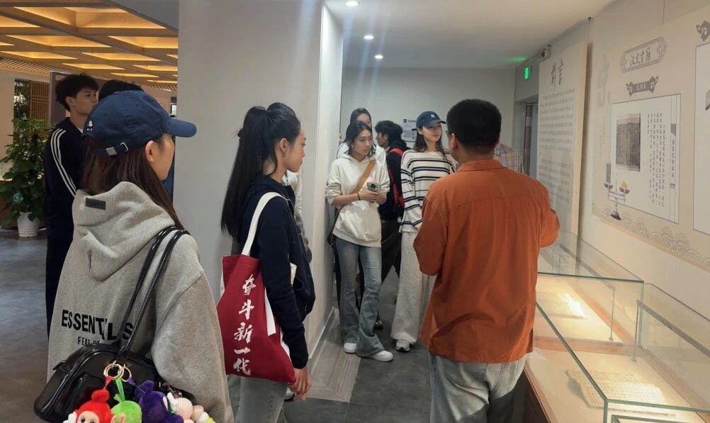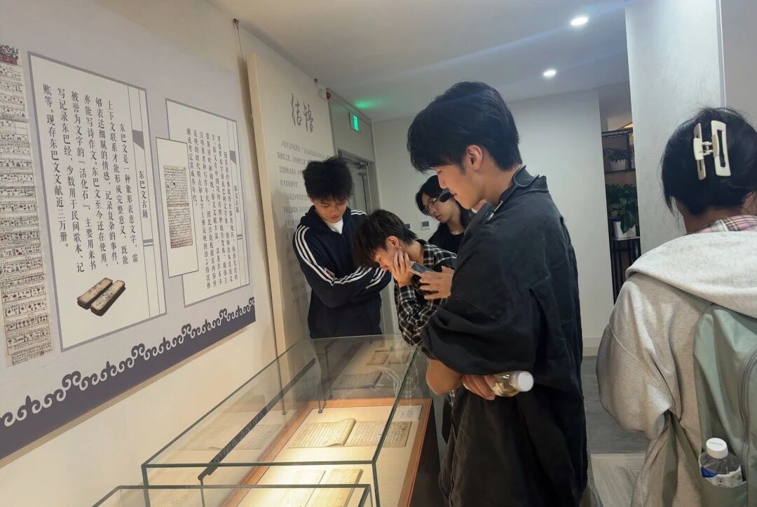 首站抵达图书馆,知识海洋让大家流连忘返。从泛黄的古籍到珍贵的影像,同学们在书页与照片间穿梭,尤其在看到国家领导人与中央民族二人麻将
