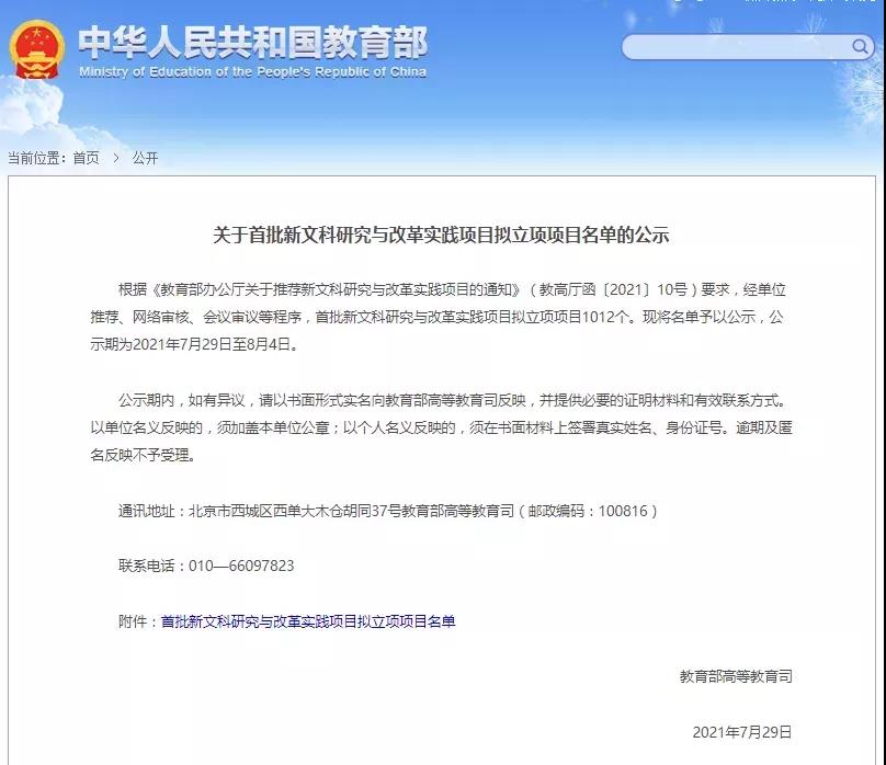 喜报 | 二人麻将 获批教育部首批新文科研究与改革实践项目立项