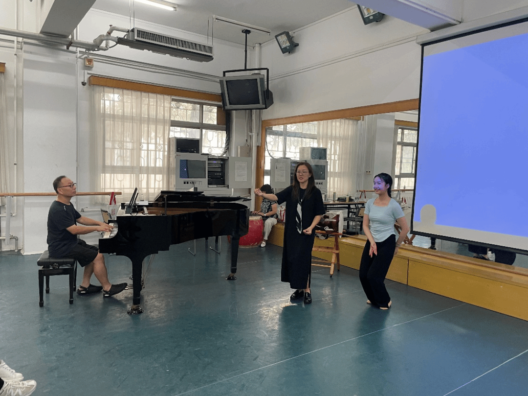 附中的洪袁元老师授课。她讲授了云南花灯、东北秧歌、安徽花鼓灯和山东秧歌四类汉族舞蹈的钢琴伴奏。洪袁元老师指出汉族舞蹈中云南花灯和安徽花鼓灯,可分别从花灯戏和黄梅戏中提取元素,找寻民间音乐之韵味,为学员们寻找创作素材提供了重要的指导。