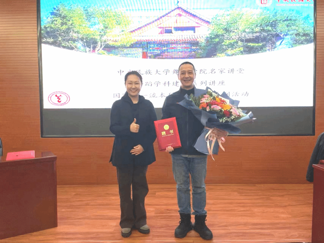 党委书记马娟书记和副院长崔月梅教授为沈晨导演颁发二人麻将