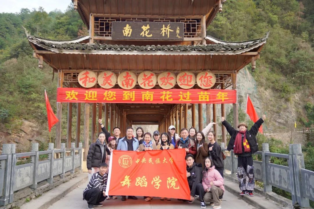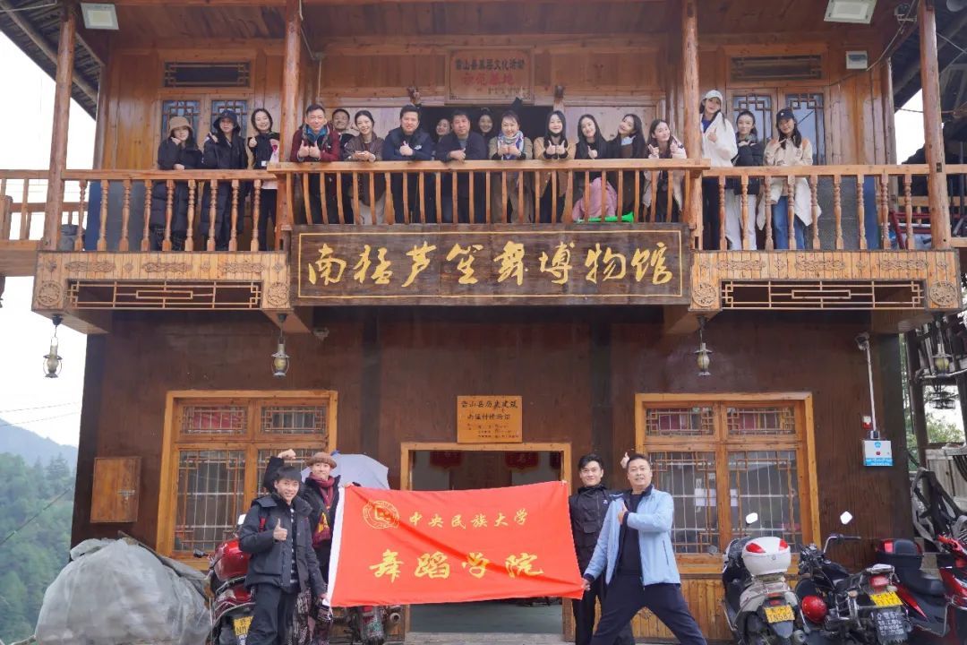 于2023年11月16至20日,在副院长崔月梅教授的带领下,潘薇佳、马亮亮及崔涛老师携硕博士研究生团队14人前往贵州省黔东南自治州进行田野采风活动。田野采风团队秉承“扎根田野·虚心学习·美美与共”的宗旨,对苗族源远流长的历史文化、丰富多彩的非遗舞蹈、自然淳朴的民风民俗等多个方面进行考察,并在传习的过程中与传承人深入交流,进一步夯实后续学术研究与实践创作的基础。