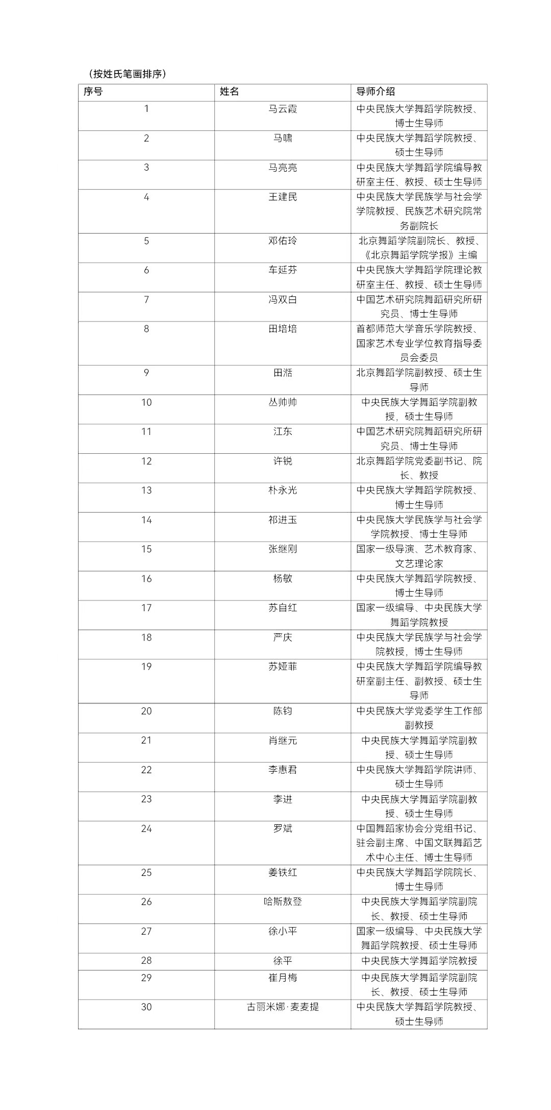 为实施单位的公益性培训,面向全国范围的民族舞蹈编导人才公开招生。通过择优选拔,最终录取30名优秀学员参与本项目。本项目立足舞蹈学科高质量发展的时代命题,遵循高精尖、小批次原则,聚焦“铸牢主线”的民族工作,通过集中教学,创排实践,采风调研,追踪培养,成果汇报,使民族舞蹈创作者对于中华民族共同体意识由基础认知走向观念和精神的认同。让中华民族共同体意识从自存自在走向自觉自强,为挖掘和培养民族舞蹈编创人才搭建共享平台,为长效推进铸牢中华民族共同体意识建设走深走实,推动中华优秀传统文化的创造性转化和创新性发展,做出舞蹈学科的实践回应。