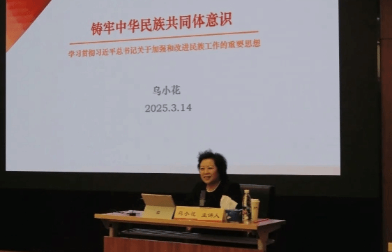 乌小花教授从梳理中国共产党历经百年探索形成中国特色解决民族问题的这“一条正确道路”的历史过程切入,重点讲述了进入新时代中华民族伟大复兴关键时期这“一个历史方位”,如何形成铸牢中华民族共同体意识这“一条工作主线”,并从“五个共同”“五个认同”“四个与共”“四个都有”“四个关系”“三个意义”“三个意识”“两个纳入”“一个史观”“一个任务”“一个保证”等方面深入浅出地阐释了习近平总书记关于加强和改进民族工作的重要思想的核心要义、丰富内涵和实践要求,解析了中国特色解决民族问题的正确道路的优越性,强调了要完整、准确、全面学习把握和贯彻落实这一重要思想。