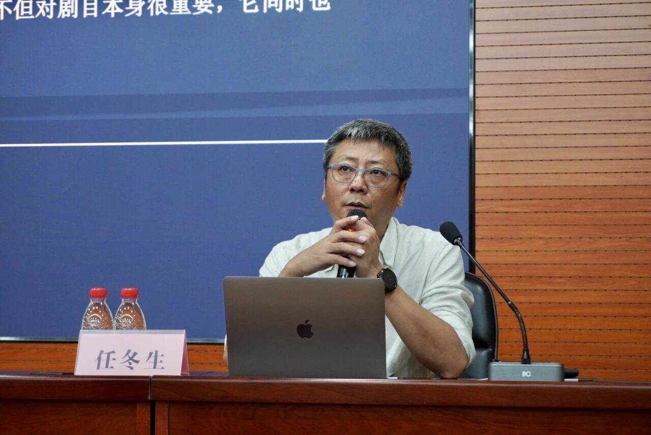 任冬生教授首先从“文脉”切入,提出舞台视觉不仅是艺术作品的外在装饰,更是一种深层次的文化表达。他从四个方面展开论述:中国传统文化的传承、红色文化的现代表达、古典美学的当代对话、以及舞台视觉的创新探索。在他看来,舞台上的一束光、一块布景,既能界定叙事时空,也能承载文化记忆,塑造精神力量。