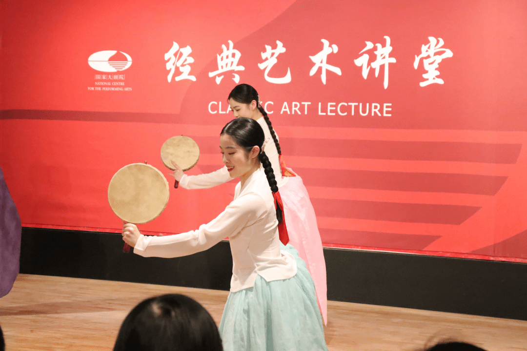 教授、硕士生导师崔月梅在国家大剧院·新闻发布厅,进行“舞韵华夏——圣洁优美的朝鲜族舞蹈”讲座。